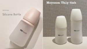 Bình sữa Moyuum silicon và bình Moyuum thủy tinh bọc silicon đang là hai lựa ...